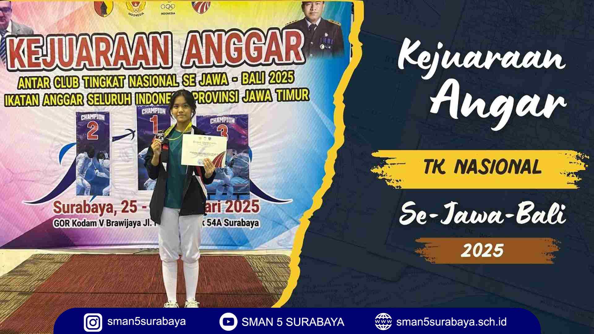 Masih muda dan energik, dia masih kelas X-8 SMA Negeri 5 Surabaya tetapi sudah mempunyai prestasi bidang olah raga Anggar yang cukup membanggakan. Dia bernama Celline Zanzabilla Putri Ardiyansha yang merupakan peserta dari Kejuaraan Anggar antar Club Tingkat Nasional se Jawa – Bali dilaksanakan selama tiga hari 25 – 27 Januari 2025 GOR Kodam V Brawijaya jalan Hayam Wuruk 54A Surabaya. Penyelenggaranya adalah Ikatan Anggar Seluruh Indonesia (IKASI) Jatim dan Forkopimda. Prestasi yang diraih adalah Juara 3 Degen Putri Beregu. Selamat Celline, teruslah berprestasi sesuai bakatmu !!