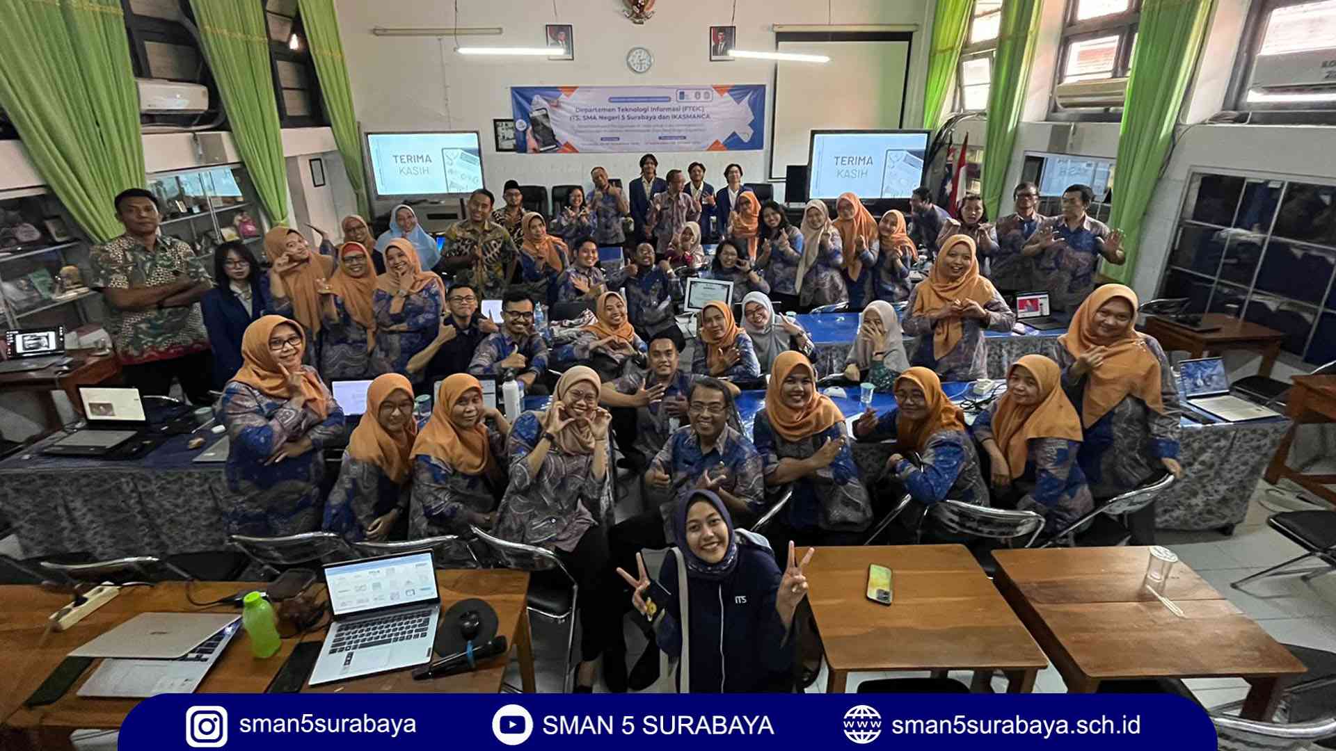 Pada hari Kamis, 25 September 2025, SMA Negeri 5 Surabaya mengadakan kegiatan Pelatihan Praktis Artificial Intelligence (AI) yang dibimbing langsung oleh tim dosen dan mahasiswa dari Departemen Teknologi Informasi Fakultas Teknologi Elektro dan Informatika Cerdas (disingkat FTEIC) Institut Teknologi Sepuluh Nopember Surabaya (ITS).