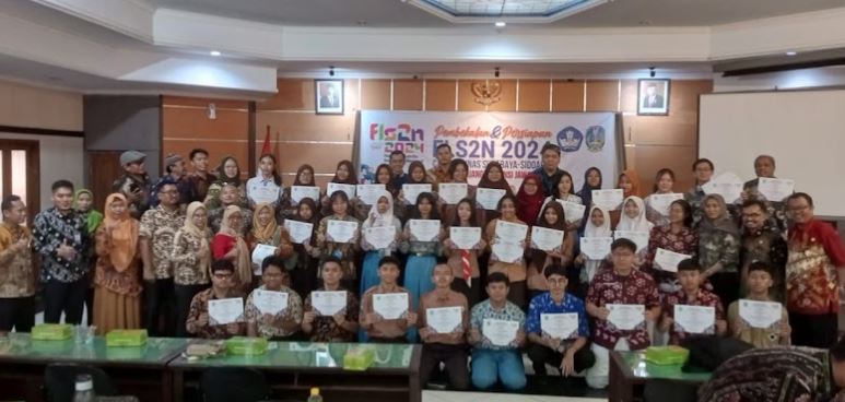 ![]() Para Pemenang FLS2N 2024 Surabaya-Sidoarjo | ![]() Penghargaan dari Gubernur Jawa Timur untuk para Siswa Berprestasi |